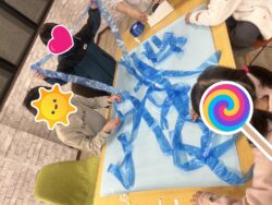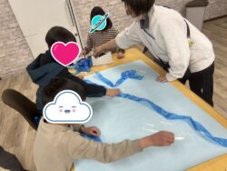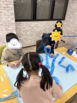 小部屋では、「お川」を大きな紙に表現してもらいました。