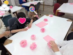 一つ目の部屋では、お花紙を使い花をたくさん作ってもらいました。