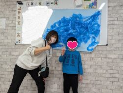 みんなで完成した作品を前のボードに貼って写真を撮りました!