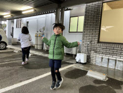 雨が降ってきて大縄跳びが出来なかったので最後は自由に飛びました。