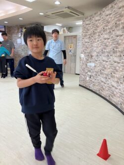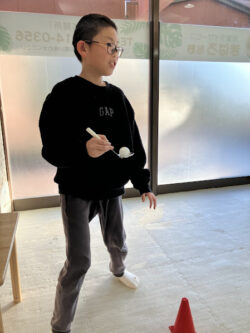 そして、今日のレクリエーションは、「おたまリレー」を行いました。