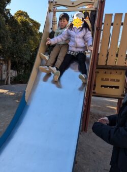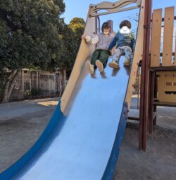 人気の滑り台は幅が広くて、ペアでも滑れちゃいました。