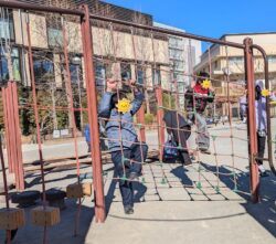 ここの公園は遊具がアスレチックになっていて
