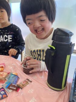 まずはチョコをメインとしたお菓子の山をみんなの前に置きます!