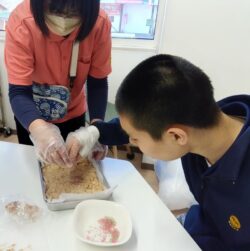 元気にルーティンをこなし午前は植栽班とおやつ(クランチ)作り・体力作り班とに分かれて行動。