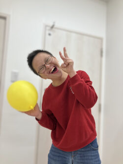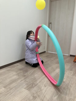 輪っかをくぐる前に風船を上に飛ばしてくぐったらキャッチしてみよう👀