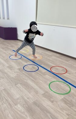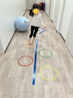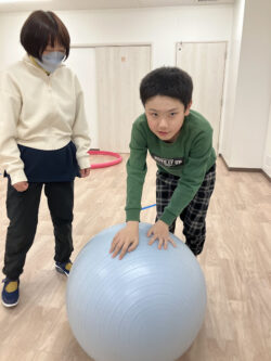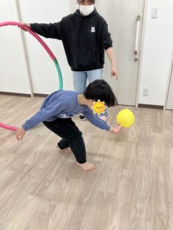 風船輪っかくぐり、バランスジャンプ、ボール転がしの3種目を実施しました!