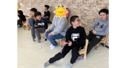 自分の順番ではない時は、近くのお友達とおしゃべりしながら座って待機しています。