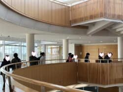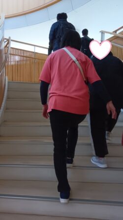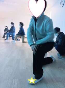 大画面を目の前にし、スタッフも一緒にストレッチ!