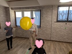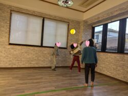 風船バレーでは風船を落とさないように真剣です(^^ゞ