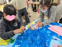 前回は、大きな紙にスズランテープを使って川を作ったり、