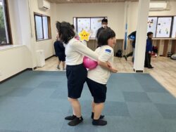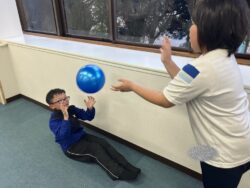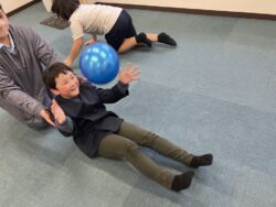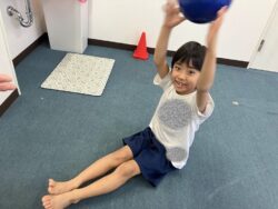 2人一組でボールを使って、3種目の筋トレを行いました。