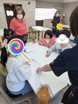 1から5段階の声の大きさの図を見ながら、みんなで実際に声に出してみて、適切な大きさを確認しました。