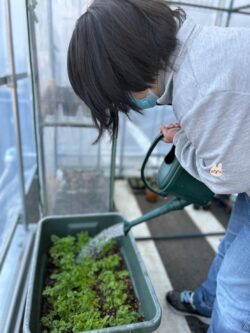 ハウス内では椎茸の収穫、清掃、ミニキャロットのお世話を行いました。
