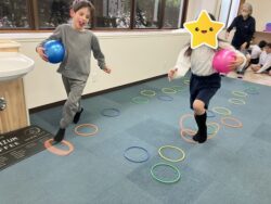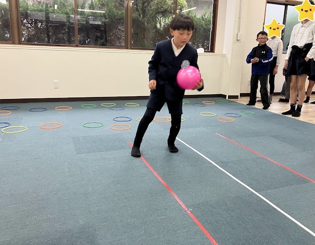 今日の課題は、『サーキット』ボール🥎を持ちながら、けんけんぱ&反復横跳びを
