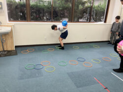 けんけんぱと反復横跳びをします。