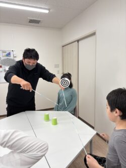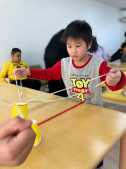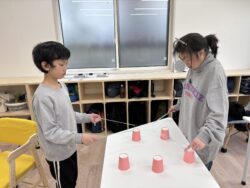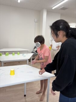 4人一組で紙コップ運びゲームを行ないました✨✨