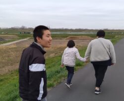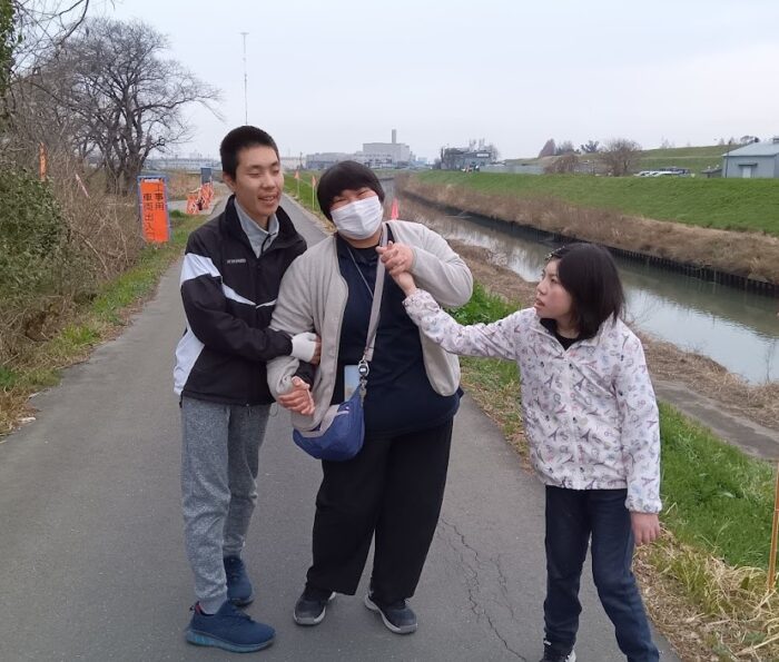 ウォーキングは近くの土手沿いへ。青空だったら最高だったのに残念🥺