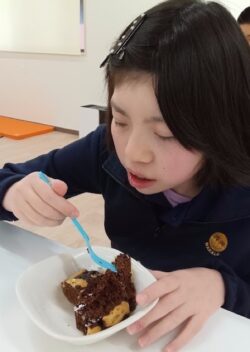 手作りおやつ班は午後も引き続きブラウニー作り。午前のブラウニーは冷蔵庫で冷やして、午後のブラウニーは温かいままで🤤