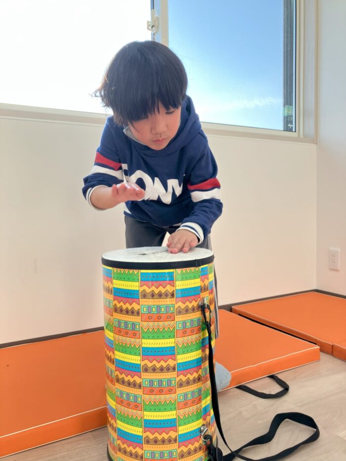 大きい太鼓やいろんな楽器にみんな興味津々です💛