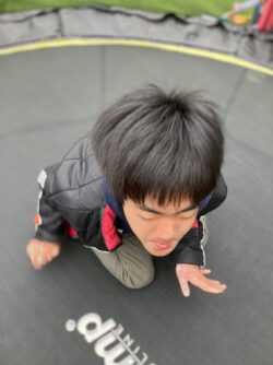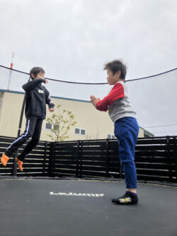 トランポリンでは、お友達と飛んでみたり