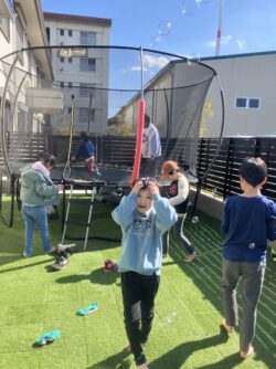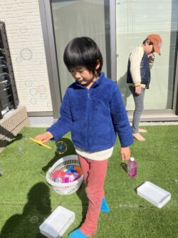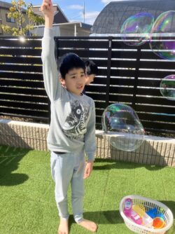 トランポリンを待つ間にはシャボン玉でも遊びました😄