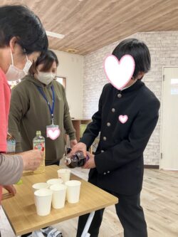 お菓子も乗せて、ジュースを自分で注ぎます🍹