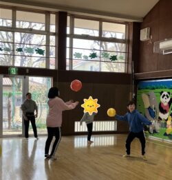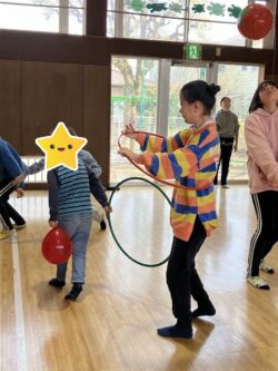 ドッチボールをしてみたりフラフープを一生懸命回そうとしたりと