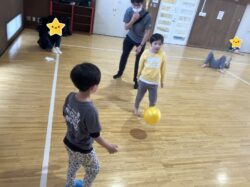 体育館で遊ぶ組と、2階の遊戯室で過ごす組とに分かれて楽しんでいます。
