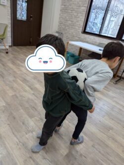 お友達を一緒に背中にボールを挟んでバランストレーニングも行いました