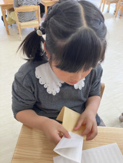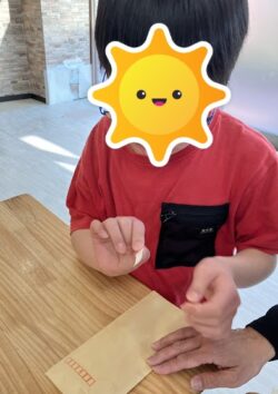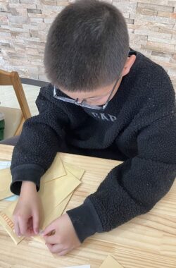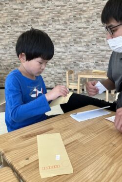 本日は就労練習ということで、手紙を入れた封筒を作る練習を行いました。
