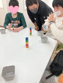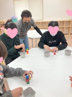 ②積み木で遊ぼう!では、スタッフが作った積み木と