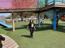 スタッフが鬼になり、追いかけます。子供達も一生懸命逃げます💦