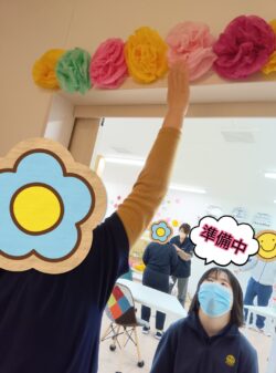 入所式の会場の飾りつけを午前中に