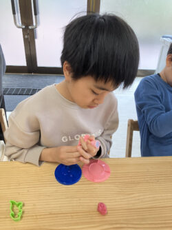 ⑤ねんど遊びでは、小麦粘土を使ってそれぞれ好きなものを作ってもらいました✨