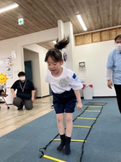ラダー、トランポリン、バランスストーン の3つの種目を行いました。