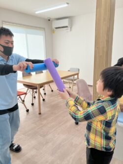 スタッフが「弱く~~~」というと弱く叩くという遊びを行いました(^^♪