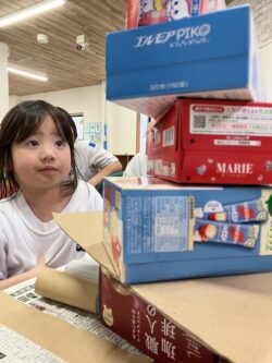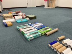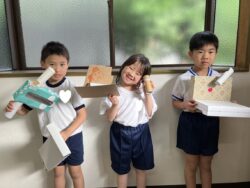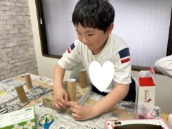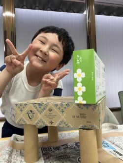 ティッシュの箱やトイレットペーパーの芯を組み合わせて、思い思いに工作をしましょう💪