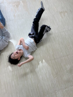 スタッフの合図で寝転んで