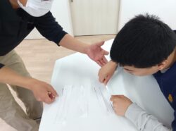 こちらの班は、テープ貼りの練習です👍