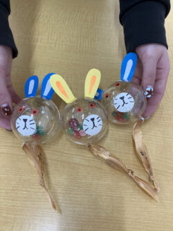 本日の課題は、季節の工作で「うさぎのまんまるマラカス」を作りました