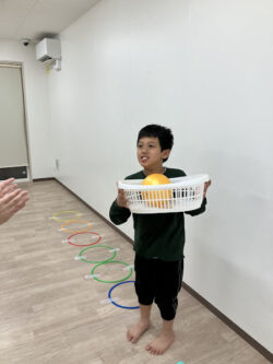 ボール投げ、ジャンプ、バランスの三種目を実施しました!