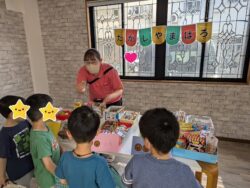 今回はグループに分かれて、お友達と一緒に駄菓子を選びます!