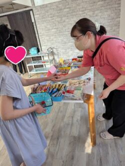 お菓子を選んだ後は、まはろ通貨を渡していきます!