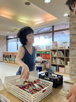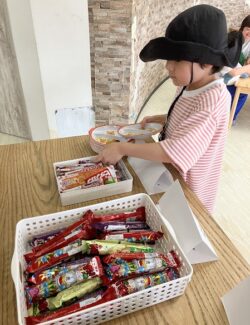 お金を持って一人ずつ好きなだがしを買いに行きます。