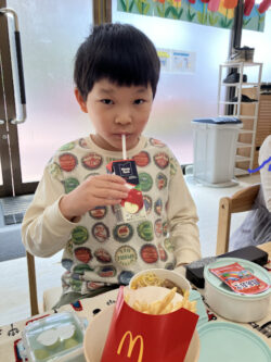 本日は【お楽しみランチ】!みんなの大好きなマクドナルドをお持ち帰り注文し、お昼ご飯にしました!