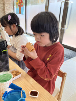 ハンバーガーやポテト、ナゲットをほおばり、よく噛んで食べていました。