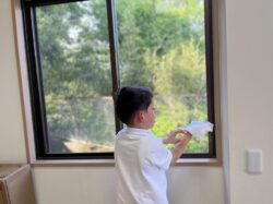 窓を拭いて「こんなに汚れているよ」と汚れた雑巾を見せてくれました👌