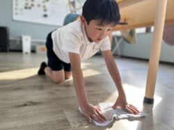 「床をピカピカにする」と張り切って雑巾掛けしていました😊