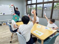 はじめにプリント2枚「型合わせ」と「同じ柄を数える」でしたが、型合わせは簡単にできましたが、